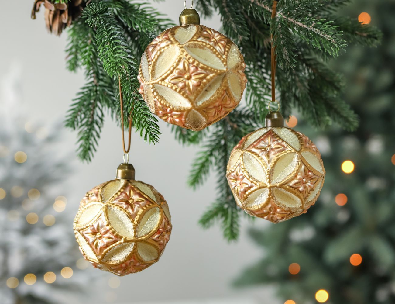 Среди множества ёлочных украшений порой попадаются маленькие произведения новогоднего искусства - они, словно яркие штрихи на полотне художника, становятся в декоре теми акцентами, на которые хочется любоваться, не отрывая взгляд! Шесть прекрасных шаров из набора 'Блуа' - и есть те самые произведения, ведь в них есть всё: благородные, поистине дворцовые оттенки, геометрия и обтекаемость, тонкая позолота линий и ритм орнамента... Подарите вашей ёлочке капельку истинной роскоши, а себе - эстетическое удовольствие!