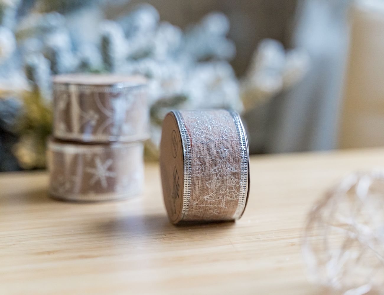 Только изящный зимний мотив на чистом холсте, только тончайшая линия серебра по краю... А дальше - элегантный бант или причудливая волна, изящное украшение подарка или домашний декор? Всё в ваших руках! Армированный край ленты для декорирования ЗАСНЕЖЕННЫЙ ХОЛСТ позволяет ей сохранять любую выбранную вами форму!