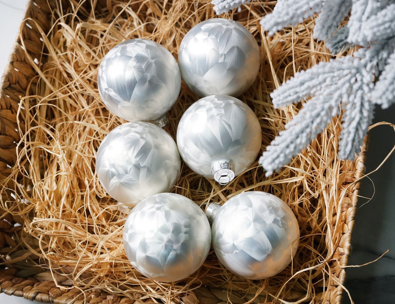 Набор стеклянных шаров, цвет: морозный белый, 80 мм, упаковка 6 шт., Winter Deco