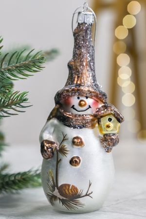 Стеклянная елочная игрушка Снеговичок - Лесничий, 16 см, Winter Deco