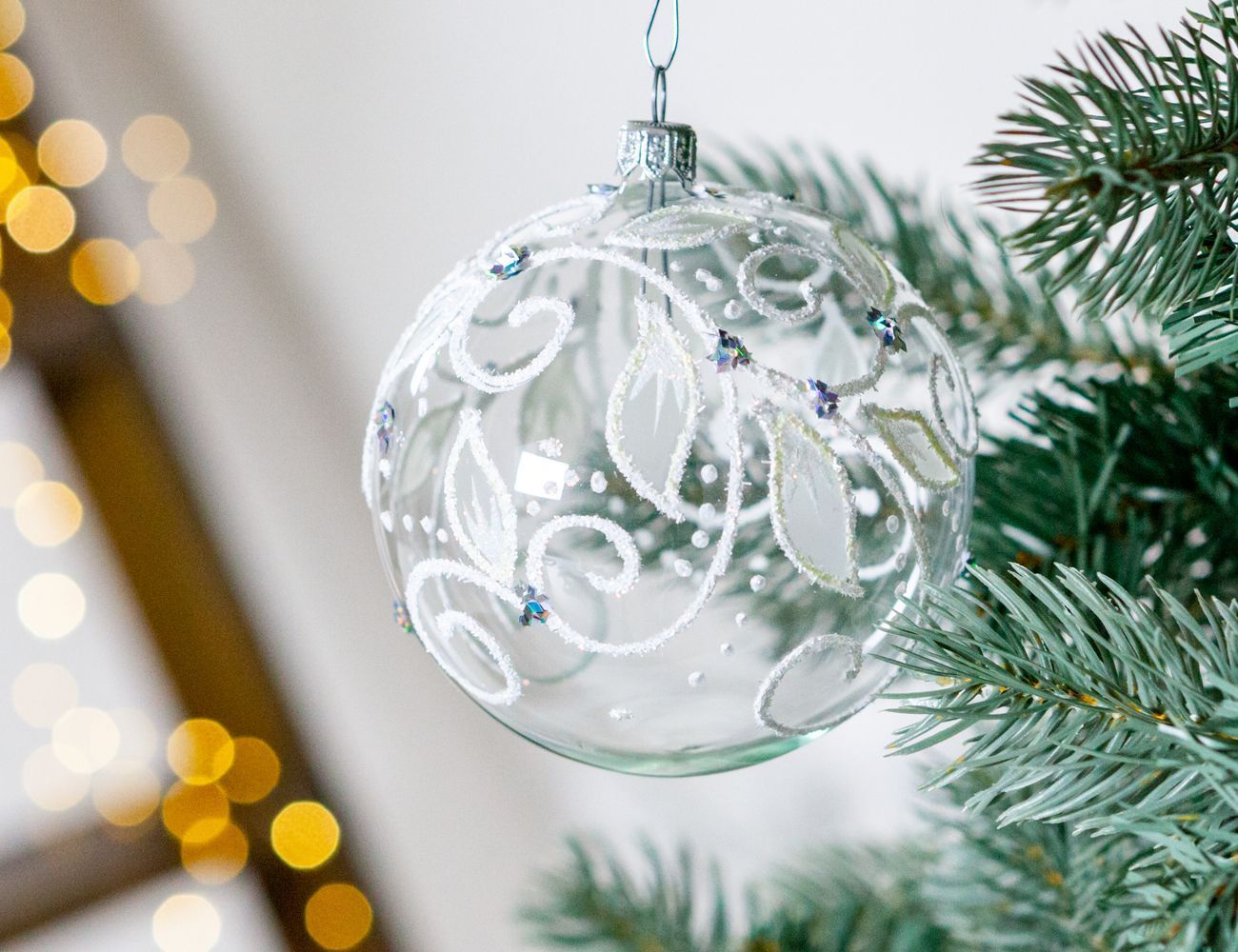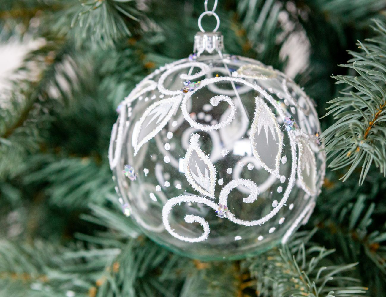 Новогодний шар из стекла с ручной росписью.