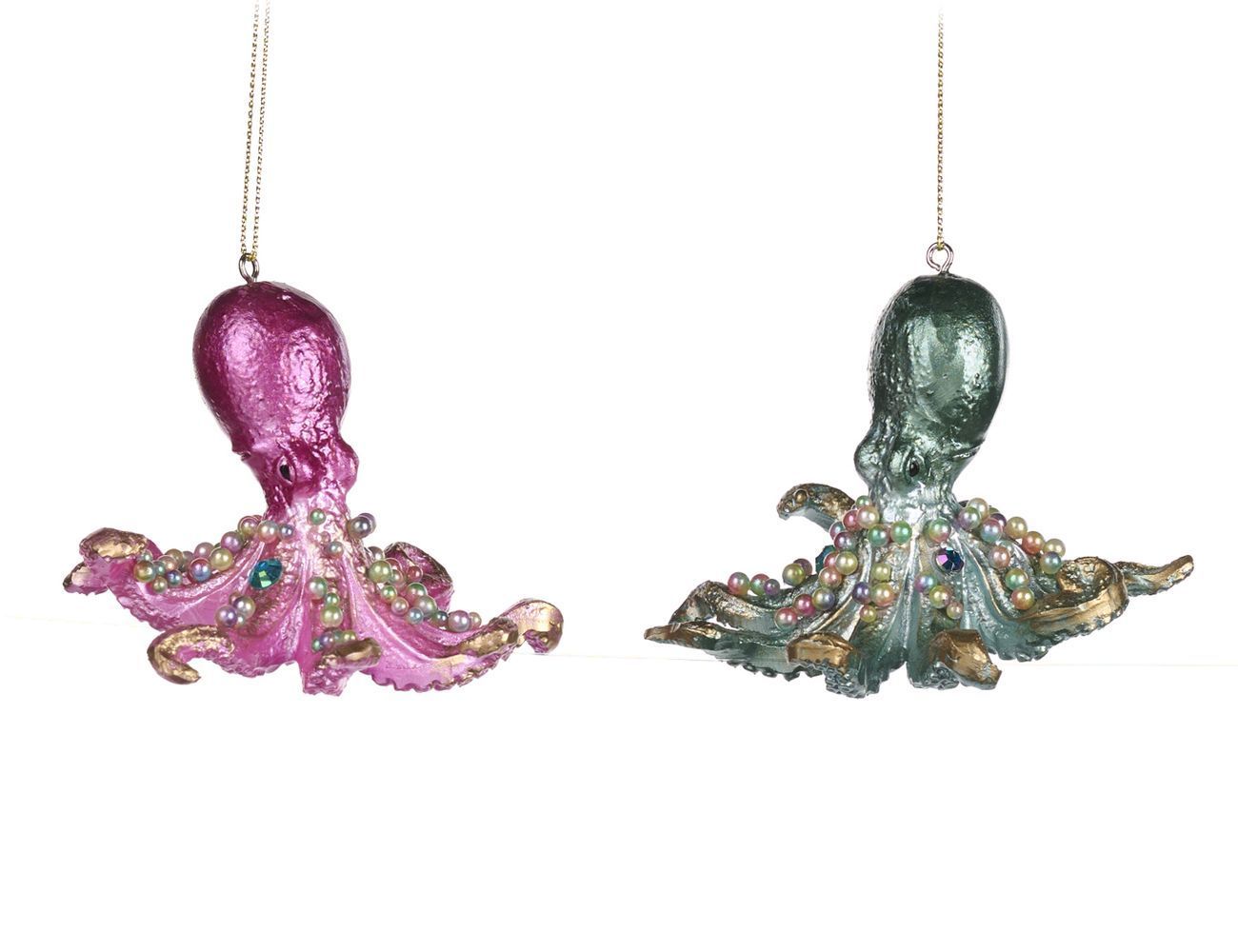Ёлочная игрушка ОСЬМИНОГ С СОКРОВИЩАМИ, серия ОБИТАТЕЛИ МОРСКИХ ГЛУБИН, полистоун, цвет морской волны, 9 см, Goodwill