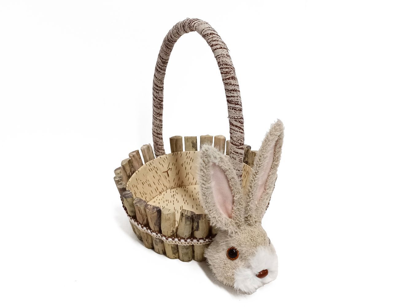 Пасхальная корзинка КРОЛИК ДОБРУША, дерево, текстиль, бежевый, 26х19 см, Due Esse Christmas