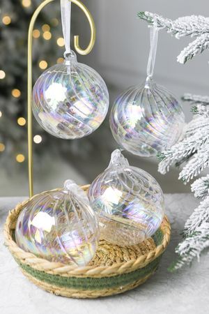 Идеальные украшения - это те, что прекрасно сочетаются с любым окружением, те, что легко и гармонично дополняют собой любой интерьер. Прозрачно-невесомые, чуть перламутровые шары из коллекции 'Ариато' - именно такие украшения: в классическом интерьере или в супер-современном, на природной ёлочке или искусственной, на традиционной зелёной или модной цветной - украшения 'Ариато' везде будут великолепны! Обратите внимание: в коллекции есть украшения других форм.