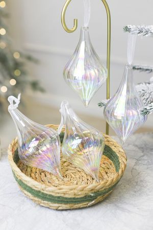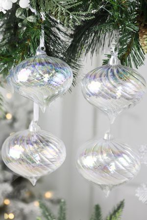 Идеальные украшения - это те, что прекрасно сочетаются с любым окружением, те, что легко и гармонично дополняют собой любой интерьер. Прозрачно-невесомые, чуть перламутровые подвесные 'луковки' из коллекции 'Ариато' - именно такие украшения: в классическом интерьере или в супер-современном, на природной ёлочке или искусственной, на традиционной зелёной или модной цветной - украшения 'Ариато' везде будут великолепны! Обратите внимание: в коллекции есть украшения других форм.
