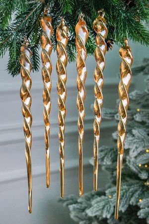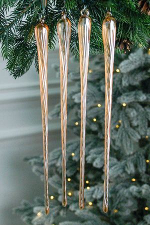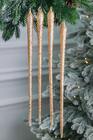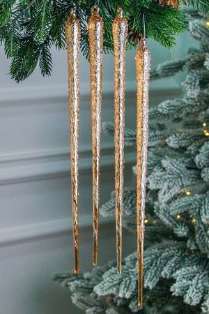 Набор ёлочных украшений ЗОЛОТОЙ ЛЁД: СОСУЛЬКИ САЛЬМЕ, стекло, 25 см, 4 шт., Winter Deco