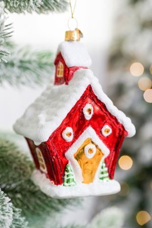Если после морозной лыжной прогулки вам доводилось согреваться возле камина, в котором мерцают и потрескивают поленья, то вы знаете, что сложно придумать что-то более уютное и манящее, чем заснеженный дом, под крышей которого вас ждёт тепло, мягкий плед и горячий ароматный напиток! Чудесный ярко-красный домик, укрытый мерцающим снегом, не только украсит ёлочку, но и поманит к настоящим зимним приключениям!