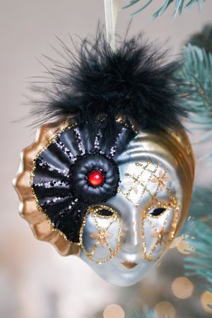 Элегантная, изысканная, таинственная, украшенная плюмажем и роскошным чёрно-золотым бантом, венецианская маска - символ праздника. Да, карнавал не совпадает с Новым годом, но, согласитесь, говорим 'карнавал' - подразумеваем 'праздник'. Пусть вместе с этой маской в вашем доме воцарится атмосфера праздника, яркости и веселья!