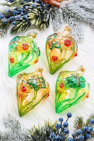 Набор ёлочных украшений АРОМАТНЫЙ САД, стекло, 13 см, 4 шт., Winter Deco