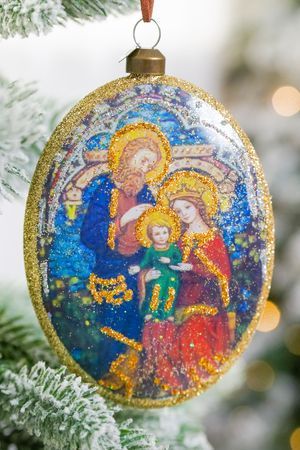 Прекрасный медальон, выполненный в традициях византийской иконописи, поможет вам создать в доме настоящую рождественскую атмосферу, ведь он может стать не только замечательным украшением для вашей ёлочки, но и чудесным праздничным акцентом в вашем интерьере.