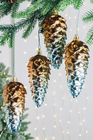 Два благородных, плавно переходящих друг в друга оттенка, непревзойдённая элегантность формы - этот эффектный ансамбль шишек 'прозвучит' словно изящный и звонкий форшлаг в праздничной 'мелодии' вашего новогоднего убранства!