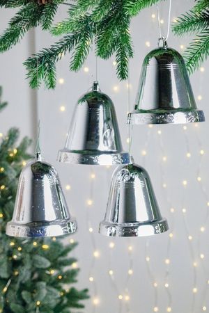 Взгляните только на эти глянцевые серебряные колокольчики - кажется, будто слышится весёлый праздничный перезвон, возвещающий о том, что к нам мчатся сани Деда Мороза, несущие праздник, радость, веселье и исполнение заветных желаний! Вот почему колокольчики всегда были традиционно-любимым украшением новогодней елки! А такие колокольчики, к тому же, незаменимы, если вам нужно нарядить большую ёлку как в помещении, так и на улице! Красивые, лёгкие, небьющиеся, прекрасно гармонирующие с другими украшениями - всё, что нужно для того, чтобы с удовольствием создавать эффектный праздничный декор!