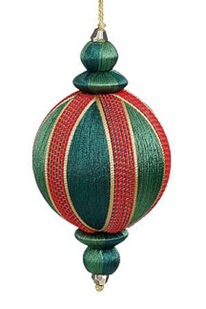 Этот замечательно элегантный зелёный с красными полосами шар чудесным образом сочетает в себе атмосферу карнавального великолепия и тёплого домашнего уюта! А это значит, что он является просто идеальным новогодним украшением!