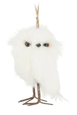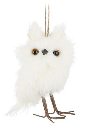 Ёлочная игрушка БЕЛОСНЕЖНЫЙ ФИЛИН, искусственный мех, перо, 12 см, Edelman