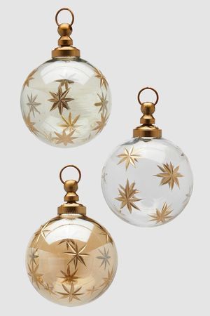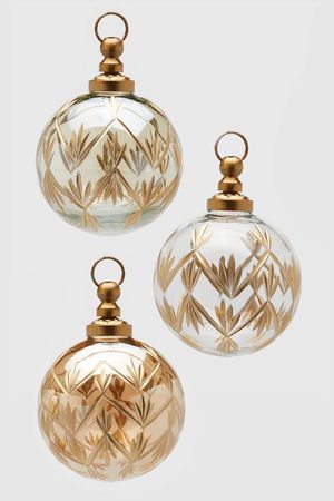 Кажется, что шары 'Виньола', словно пузырьки лёгких оттенков шампанского, немедленно поднялись бы в воздух, если бы их не удерживали бронзовые 'шляпки'! Украшенные золотисто-хрустальной резьбой, они напоминают прекрасные изделия знаменитых мастеров прошлого. Двенадцать шаров 'Виньола', словно встреча прошлого и настоящего, слияние традиций и модерна - набор изысканных украшений для красивых праздников!