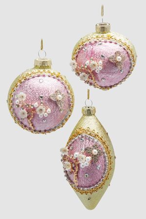 Набор ёлочных шаров и украшений САКУРА НОРИКУРА, стекло, розовый, 8 см, 12 шт., EDG