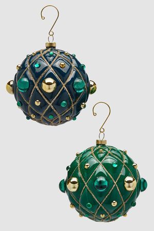 Восемь необыкновенно красивых шаров изумрудного стекла двух оттенков, словно украшения эпохи Возрождения, роскошны и изящны, изысканны и гармоничны. Тонкое переплетение золотистых нитей, изумрудные и золотые капли-кабошоны - всё это вспыхнет праздничным великолепием в самую сказочную и красивую ночь в году!