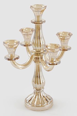 Декоративный подсвечник-канделябр на 5 свечей КАЛЕСТАНО, стекло, шампань, 35 см, EDG