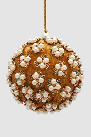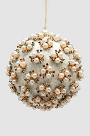 Эстетика Ренессанса и сверкающая позолота, роскошь рубинового бархата и блеск разноцветных кристаллов, но главное - россыпь жемчужин, словно закружившихся в прекрасном вальсе! Великолепный ёлочный шар переносит нас во времени пространстве, напоминая о роскоши дворцовых и замковых интерьеров. Окружите себя красотой, собрав всю коллекцию шаров 'Жемчужный вальс'!