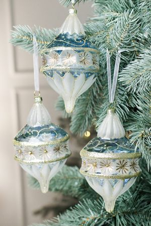 Когда настанет праздничный вечер и в доме зажгутся огоньки новогодних гирлянд, то у вас не останется сомнений в сказочном происхождении этих трёх украшений, так похожих на удивительные бело-голубые фонарики! Действительно, они будто прибыли из зимнего волшебства, где дарили свой мягкий свет заснеженным домикам и улочкам, ожидающим новогоднего чуда!