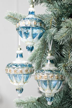 Набор ёлочных украшений СКАЗОЧНЫЙ ФОНАРЬ, стекло, голубой с белым, 15 см, 3 шт., Winter Deco