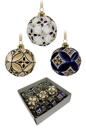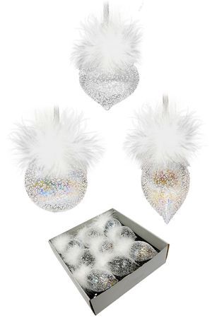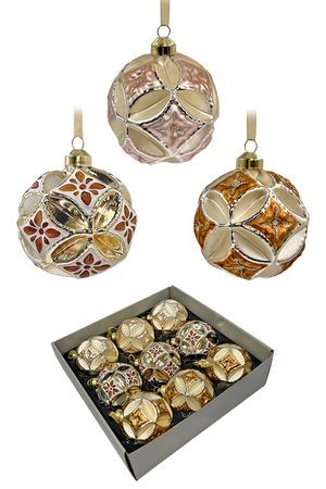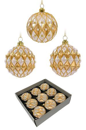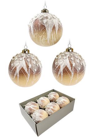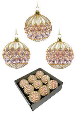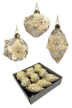 Набор ёлочных шаров и украшений АЖУРНЫЙ ВАЛЬС, стекло, серебро и шампань, 8 см, 9 шт., Christmas Deluxe