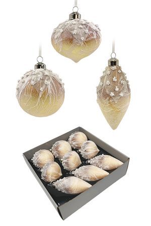 Набор ёлочных украшений СНЕЖНОЕ КРУЖЕВО, стекло, 8 см, 9 шт., Christmas Deluxe