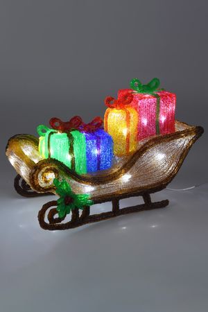 Декоративная светящаяся композиция САНКИ С ПОДАРКАМИ, акрил, 40 холодных белых LED-огней, 40х27 см, таймер, уличная, Koopman International