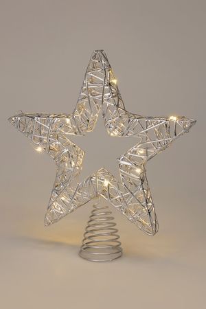 Ёлочная верхушка ЗВЕЗДА САВИТА, металл, серебряная, 20 тёплых белых микро LED-огней, 28 см, таймер, батарейки, Koopman International