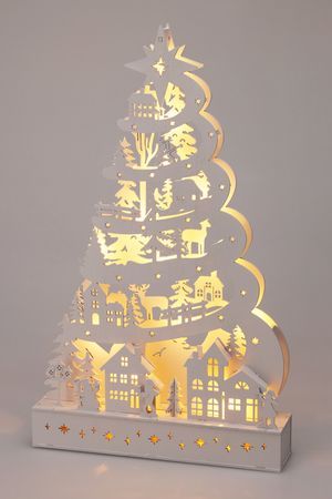 Новогодний светильник ЁЛКА-ГОРОДОК, дерево, 15 тёплых белых LED-огней, 45 см, таймер, батарейки, Koopman International