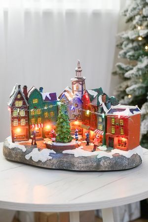 Светодинамическая миниатюра ГОРОДСКАЯ ЁЛКА с LED-огнями, музыкой и динамикой, полистоун, 38х25х26 см, Kaemingk