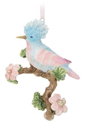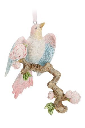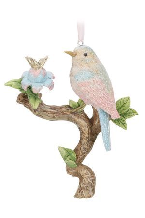 Ёлочная игрушка ВЕСЕННЯЯ ПТИЦА НА ЦВЕТУЩЕЙ ВЕТВИ, полистоун, 13 см, Goodwill