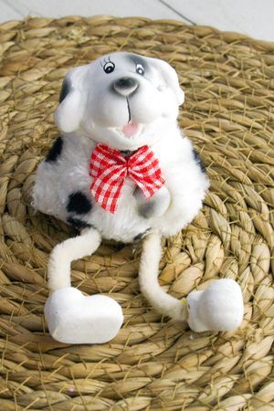 Потешный щенок, пухленький далматинец с подкупающей улыбкой, будет сидеть на полочке, свесив ножки, то есть - лапки, конечно же, готовый в любую минуту поиграть и повеселиться от души! Вместе с вами, разумеется!