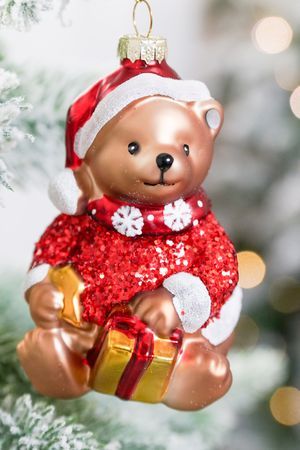 Мечтательный и чудесно обаятельный Мишка с заботливо упакованным подарочком уже представил себе - как он будет играть с весёлыми праздничными огоньками ёлочной гирлянды - он ведь именно ради этого надел такой сверкающий свитерок! А, чтобы добавить образу умильности, обзавёлся забавным новогодним колпачком и снежинковым шарфиком - просто прелесть, что за медвежонок!