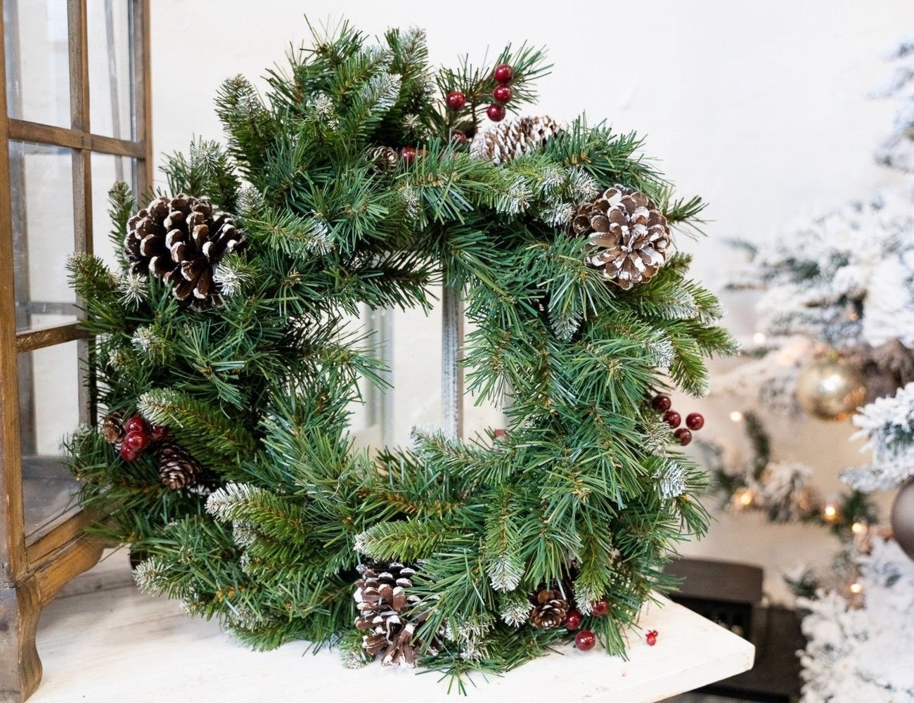 Хвойный венок ЗАСНЕЖЕННЫЙ с ягодами и шишками, хвоя - PVC, 30 см, National Tree Company