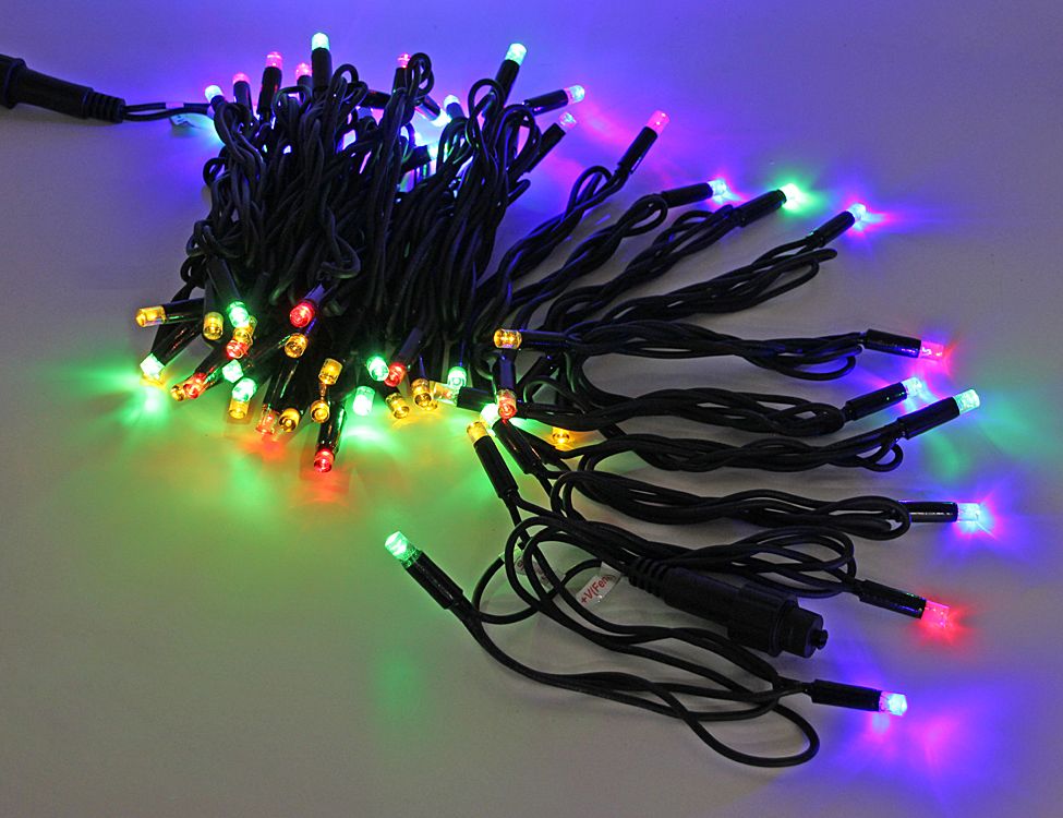 Уличная гирлянда Legoled 75 разноцветных LED ламп 10 м, с холодным белым мерцанием, черный КАУЧУК, соединяемая, IP44, Laitcom