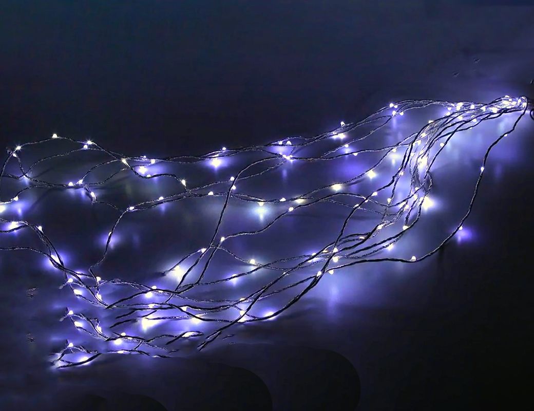 Электрогирлянда КОНСКИЙ ХВОСТ, 200 холодных белых mini-LED ламп, 15*1.5+1.5 м, провод-проволока+серебристый шнур, BEAUTY LED