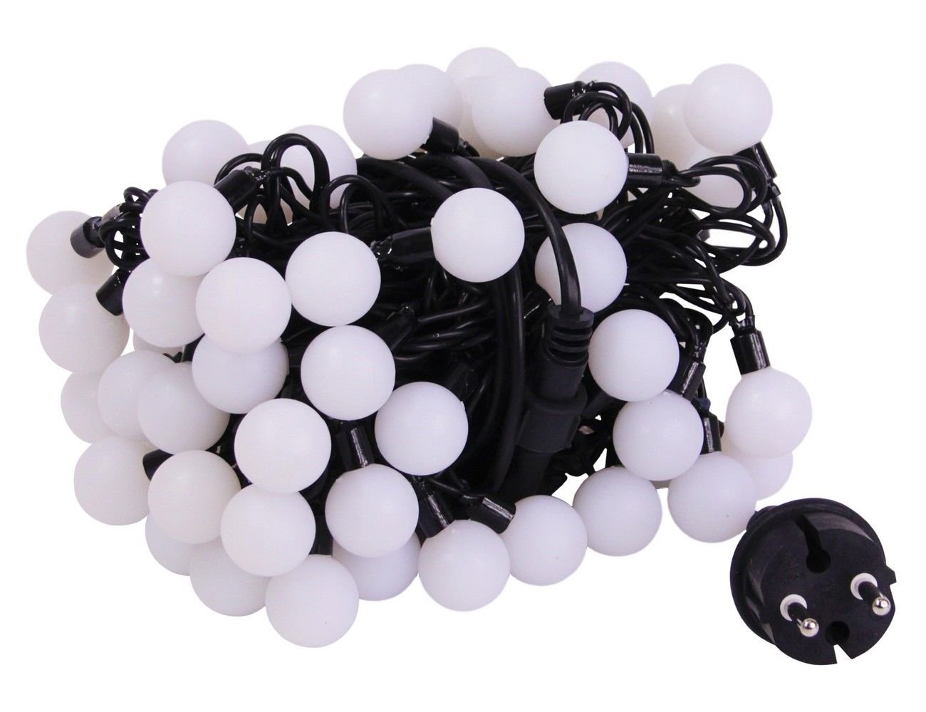 Гирлянда необыкновенно эффектна. Крупные, необычайно яркие шарики видны издалека не только в темноте, но и при дневном освещении, что делает эту гирлянду незаменимой для украшения больших уличных елей, фасадов зданий, торговых залов магазинов.
