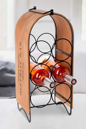 Эффектная и при этом лаконичная подставка для вина — стильный и функциональный элемент интерьера. Изготовленная из прочного дерева и металла, эта двухъярусная подставка на 6 бутылок сочетает в себе уникальный дизайн и надежность. Ее компактные размеры делают ее элегантным и практичным аксессуаром для хранения винных бутылок.