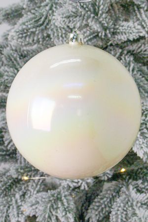 Пластиковый матовый шар изумительного оттенка 'белый радужный' подойдет для украшения больших ёлок, в том числе и уличных!