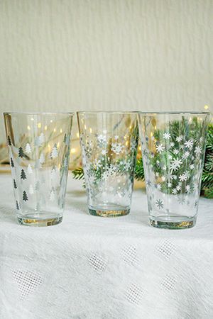 Особенные стаканы для особенного праздника! Они словно усыпаны снежно-серебристыми конфетти, да не простыми, а фигурными и чуточку волшебными - очаровательные снежинки, милые ёлочки и обаятельные звёздочки защекочут ваше настроение не хуже озорных пузырьков шампанского!