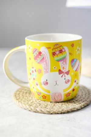 Чтобы утро было добрым, а настроение весь день замечательным, начните свой завтрак с ароматного чая из весенней кружки, где очаровательный зайчонок, сидя в лукошке, явно раздумывает, куда бы отправиться на прогулку! Кружка может стать не только чудесным аксессуаром для пасхального утра, но и замечательным подарком, и просто любимым предметом, с которым вы будете начинать каждый день!