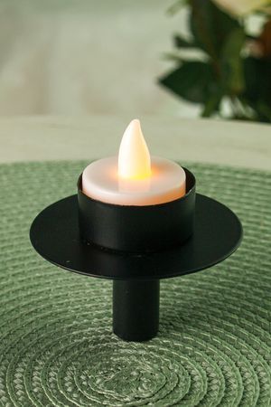 Характеристики: Высота: 2 см. Ширина: 7.5 см. Материал: металл. Цвет: черный. Свеча в комплект не входит.
