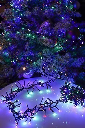 Эту эффектную электрогирлянду нельзя в полной мере считать типично 'кластерной', поскольку лампочки располагаются на относительно коротких 'усиках', и не так густо как на классической кластерной гирлянде. Но вместе с тем она обладает основным достоинством и преимуществом 'кластерной' гирлянды: освещение украшенных ею предметов объемно и необычайно декоративно. Это и понятно. Светодиоды на этой гирлянде не вытянуты в одну линию, а представляют скопления сверкающих огоньков вокруг оси - провода. Большое количество ламп позволяет выигрышно декорировать светом ель (подходит для елок высотой от 2,1 м до 2,3 м), хвойные гирлянды и композиции. Множество огоньков на зеленом проводе, который остаётся практически незаметным, волшебно смотрятся как в саду, так и в интерьере. Они сказочно хороши! Дополнительным бонусом является наличие контроллера, с помощью которого можно выбрать как различные режимы светодинамики, так и цвет свечения. То есть гилянда может светиться как теплыми белыми, так и разноцветными огнями. Это очень практично, поскольку яркие всполохи разноцветных лампочек уместны на вечеринке, а уютный белый свет подарит сказку романтического вечера. Благодаря этому в компании с этой гирляндой вам всегда будет комфортно! Этот класс гирлянд является абсолютным бестселлером на рождественских распродажах в европейских странах.