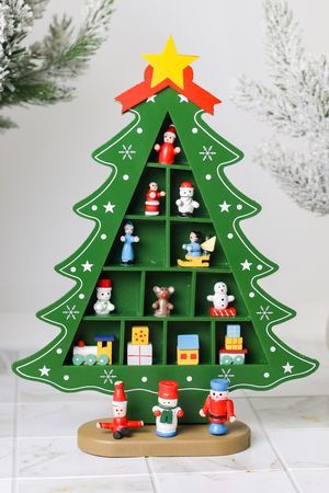 Очаровательная деревянная елка сразу создает атмосферу новогоднего волшебства! Ее ярусы покрыты милыми рождественскими узорами, а макушка украшена звездой! Кажется, будто она только что появилась из зимней сказки, чтобы подарить нам праздничное настроение!