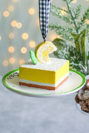 Игрушка Нежность с кислинкой — Лимонный десерт — невероятно точное воплощение высокого искусства шеф-повара. Безукоризненная форма мягко оттеняется пастельным оформлением и воздушностью