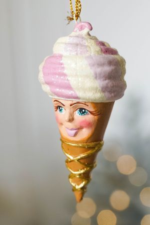 Когда-то давно, когда красивых стеклянных игрушек ещё не существовало, люди украшали праздничные ёлочки имбирным печеньем и грецкими орешками, мандаринами и шоколадками, яблоками и пряниками. Мы же теперь можем совместить традиции и технологии и украсить ёлочку волшебным розовым мороженым в вафельном рожке с разноцветной посыпкой! Это мороженое не растает и много вечеров подряд будет искриться и сверкать среди пушистой еловой хвои на радость детям и взрослым!