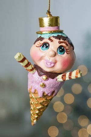Любите ли вы мороженое так, как любим его мы? Если да, то наверняка ещё в детстве мечтали получить в руки креманку, полную шариков самого разного мороженого! Что ж, вот оно - мороженое мечты: малиновое и карамельное, шоколадное и абрикосовое, в яркой сладкой обсыпке, чуть подтаявшее... Пусть это очаровательное украшение соблазнительно покачивается на праздничной ёлочке, напоминая, что уж в праздники точно можно себе позволить сладкое удовольствие!