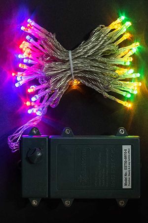 Характеристики: Количество LED-ламп: 50 Цвет лампочек:разноцветный Напряжение: 4,5V; Питание: работает от трех ' D ' батареек (в комплект не входят); Длина провода: 5 м; Провод: прозрачный силиконовый; Эксплуатация возможна при супер низких температурах до -50°C Влагозащищена IP67, пригодна для использования и в помещении, и на улицев в условиях высокой влажности; Гирлянда может работать в непрерывном режиме и по таймеру: 6 часов горит, 18 часов отдыхает.
