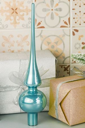 Название коллекции - Royal Classic - говорит само за себя. Элегантная классическая ёлочная верхушка-шпиль оттенка 'голубой туман' из стекла высочайшего качества подойдет для самого изысканного праздничного декора.